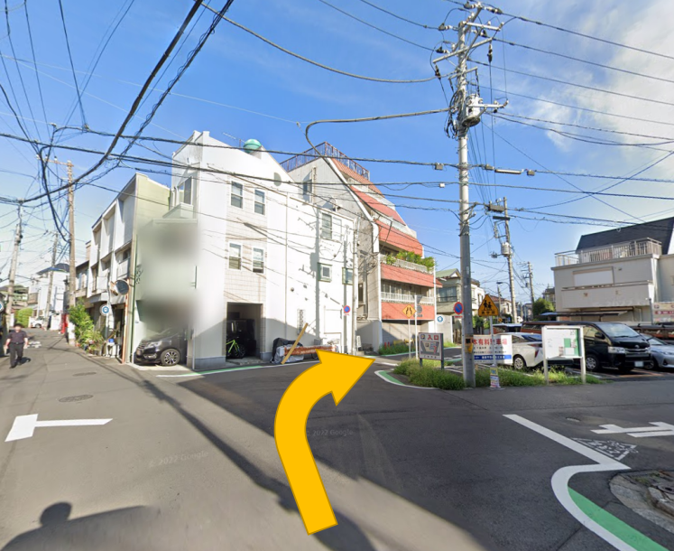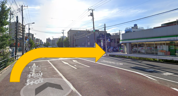 ファミリーマートのある交差点を右に曲がってください。